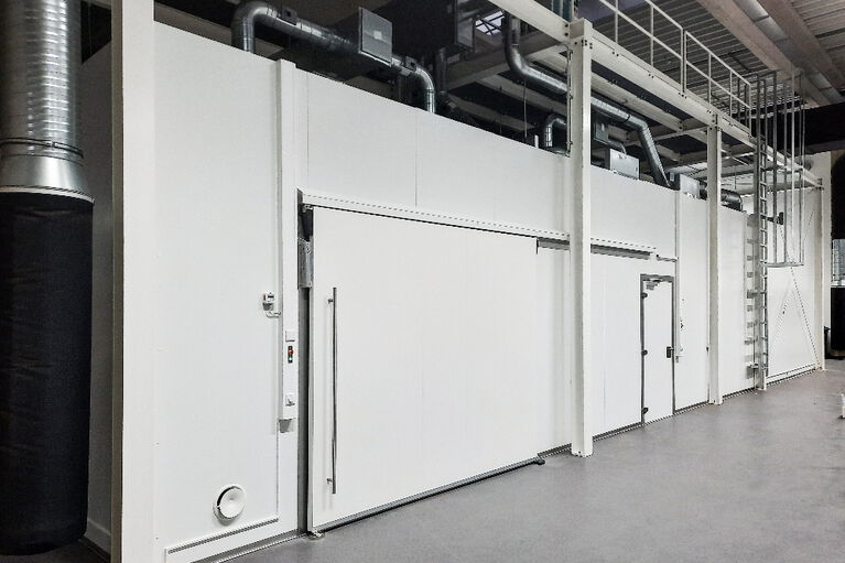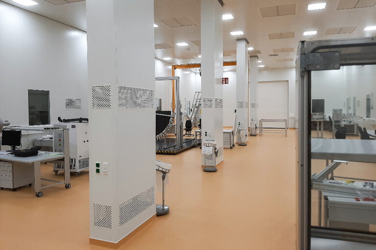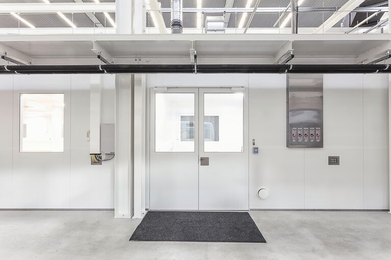 Luftschleuse zwischen zwei Reinraum-Montagehallen.