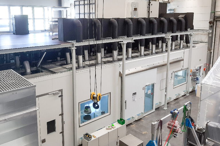 Die Filter-Fan-Unit und das Beleuchtungssystem werden optimal auf den Anwendungsfall ausgelegt und in die Decke eingebaut.